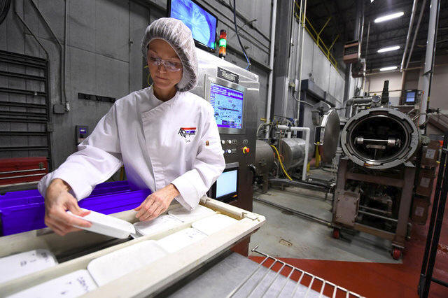 the MATS-B machine as she makes packaged meals at an Ameriqual