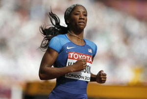 with Harper Nelson, Olympic silver medalist Nia Ali and heat winner