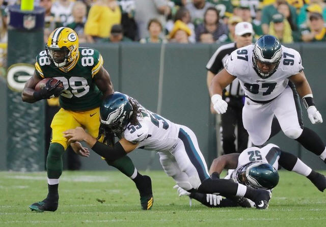 Packers running back Ty Montgomery (88) rushes past Philadelphia