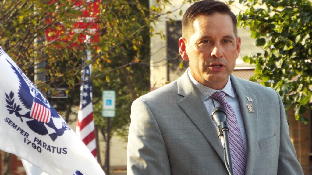 Illinois State Representative, Tim Butler, who was instrumental in making Illinois a Purple Heart State, had a few words for those who earned the special merit. First Rep. Butler thanked Sheralyn for singing saying, “The National Anthem is my favorite song.” He explained the National Anthem is a song about our flag, but also a song about a battle at Baltimore Harbor. He then thanked those in the service by saying, “It’s those of you who serve who make those broad stripes a little nicer when we look at the flag and make those stars a little brighter.”
