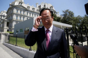 Foxconn Chairman Terry Gou talks to reporters as he exits the White