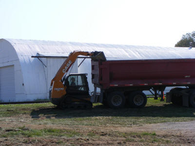 removing the burned out remains of the paint shop at Treu Body Works