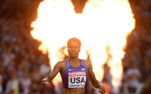 relay event, Anneisha McLaughlin-Whilby slowed down clutching her