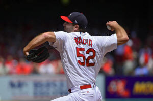 Cardinals starting pitcher Michael Wacha (52) pitches during the