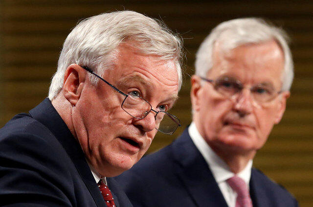 Union's chief Brexit negotiator Michel Barnier hold a joint news