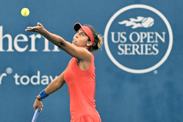 Madison Keys (USA) serves against Coco Vandeweghe (USA) during the