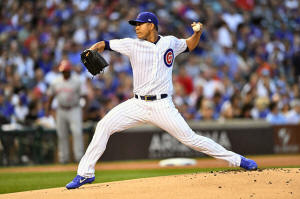 The Cubs right-hander (3-2) was stretched through his five-inning