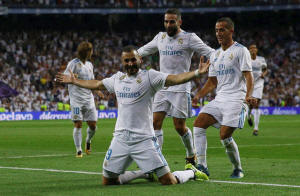 Real Madrid’s Karim Benzema celebrates scoring their second goal