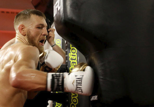 Conor McGregor of Ireland works out at the UFC Performance Center in