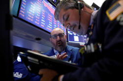 Traders work on the floor of the New York Stock Exchange (NYSE) in