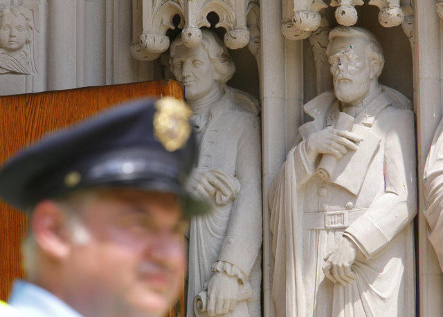 a statue of Thomas Jefferson, at Duke Chapel in Durham, North