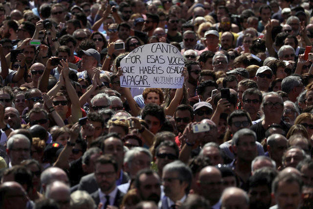 minute of silence at Placa de Catalunya, a day after a van crashed