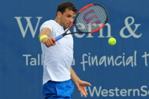 Grigor Dimitrov (BUL) returns a shot against Juan Martin del Potro