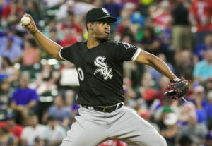 White Sox starting pitcher Reynaldo Lopez (40) delivers to the plate