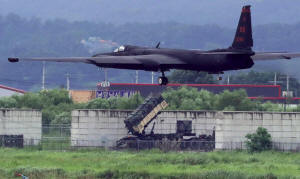 A U.S. Air Force U-2 Dragon Lady takes part in a drill at Osan Air