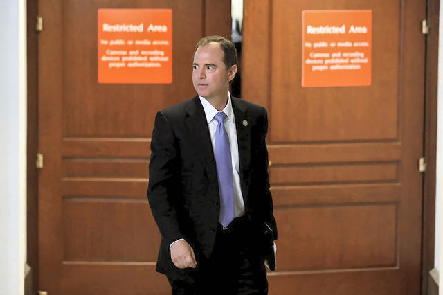 Representative Adam Schiff (D-CA) departs at the conclusion of a