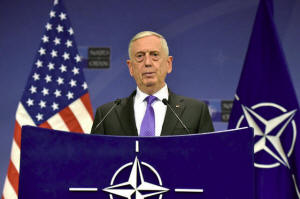 Secretary of Defence Jim Mattis gives a news conference after a NATO