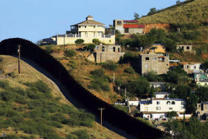 Buildings in Nogales, Mexico (R) are separated by a border fence