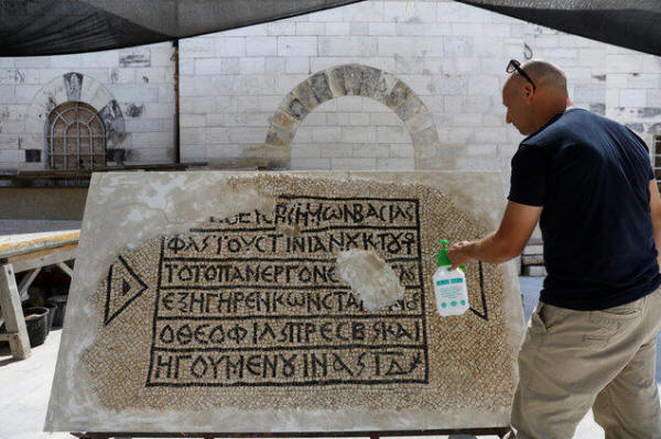 conservationist works on a 1500-year-old mosaic