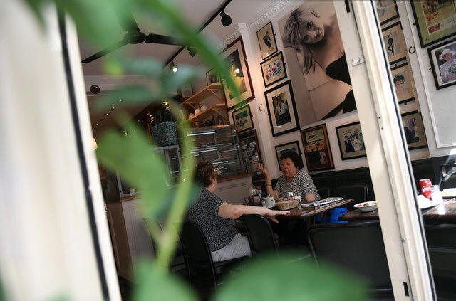 Customers sit inside the Cafe Diana