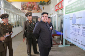 North Korean leader Kim Jong-Un smiles during a visit to the