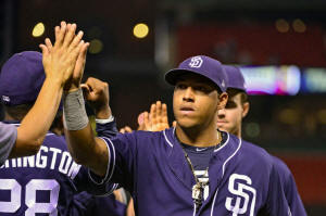 Padres third baseman Yangervis Solarte (26) celebrates with
