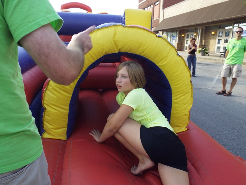 The 90-foot inflatable obstacle course had kids running, crawling, climbing and sliding from one end to the other. Off to the side was another fun inflatable, a batting cage. With a plastic ball that was suspended by air, kids had the chance to take a swing and slam the ball into the cage.