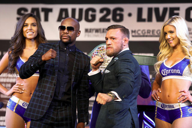 Floyd Mayweather Jr. (L) of the U.S. and Conor McGregor of Ireland