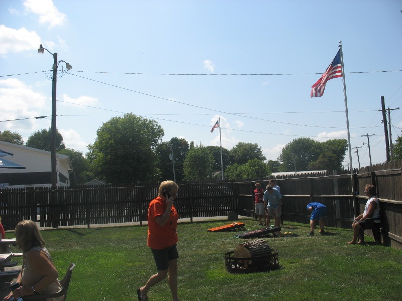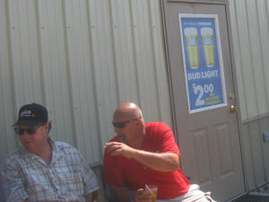 Emden's Stagger Inn, where the race begins and ends, is one of the sponsors of the event. Stagger Inn co-owner Rick Schleder (wearing red shirt) said, "I do it in memory of my wife's mother who passed away from ALS. We have a good community."