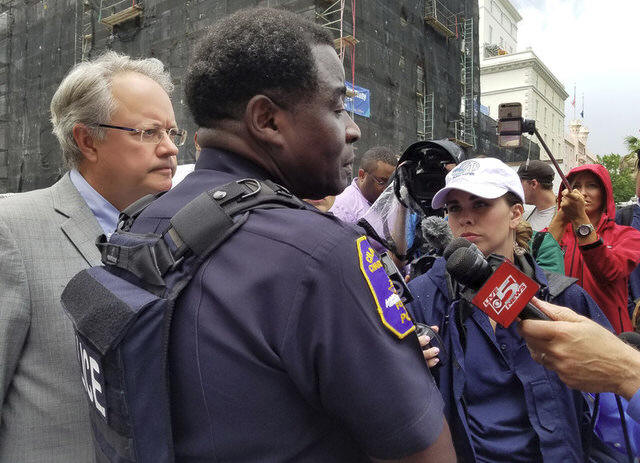 Charleston Mayor John Tecklenburg, (L) and Interim Police Chief