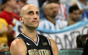 Manu Ginobili (ARG) of Argentina sits after leaving the game near