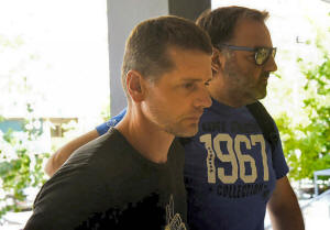 a money laundering operation, is escorted by a plain-clothes police