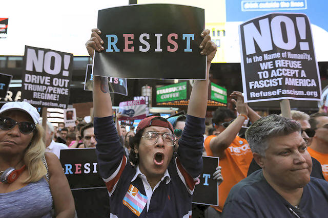 People protest U.S. President Donald Trump's announcement that he