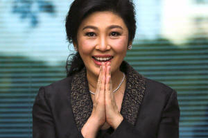 Ousted former Thai prime minister Yingluck Shinawatra greets
