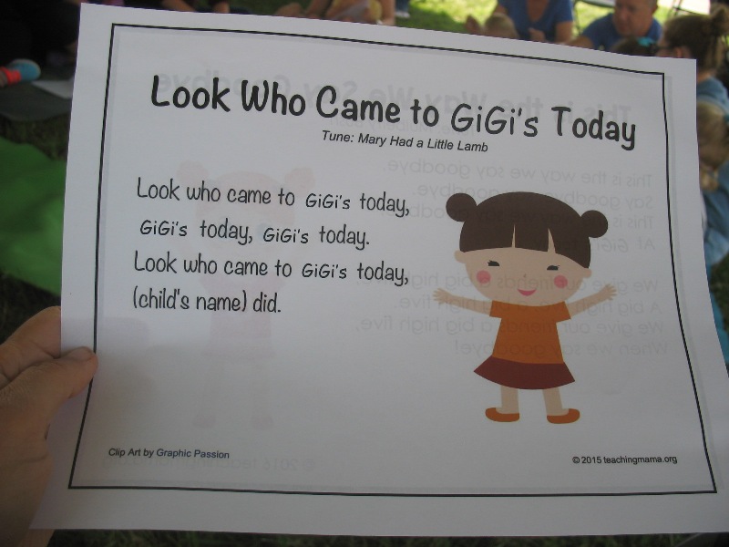 Who Came to Gigi's Today," inserting each of the children's names as