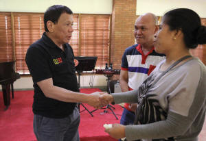 Philippine President Rodrigo Duterte greets Lorenza de los Santos