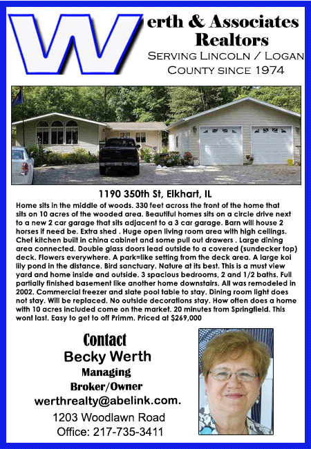 All real estate advertised in the Lincoln Daily News is subject to the Fair Housing Act for 1968 which makes it illegal to advertised "any preference, limitation, or discrimination based on race, color, religion, sex or national origin, or intention to make special preference, limitations, or discrimination."