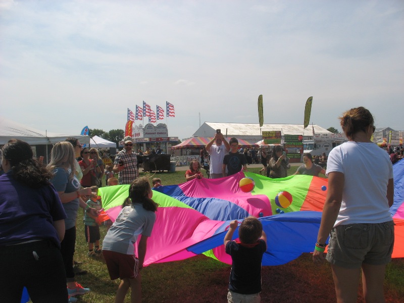 They also bounced balls up and down as they shook a big parachute together.