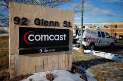 A sign marks a Comcast facility in Lawrence, Massachusetts, U.S.