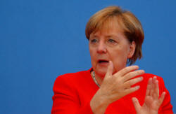 Speaking to reporters ahead of a Sept. 24 election, Merkel addressed a