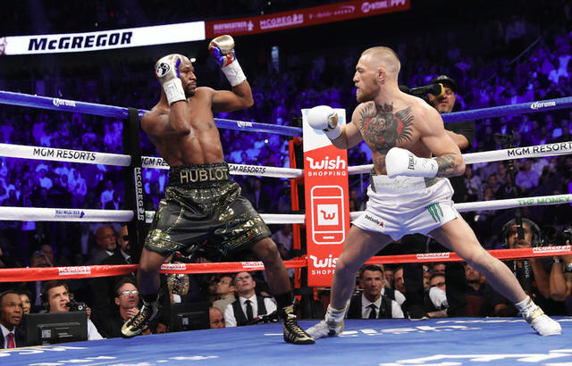 Conor McGregor in action with Floyd Mayweather Jr. REUTERS/Steve