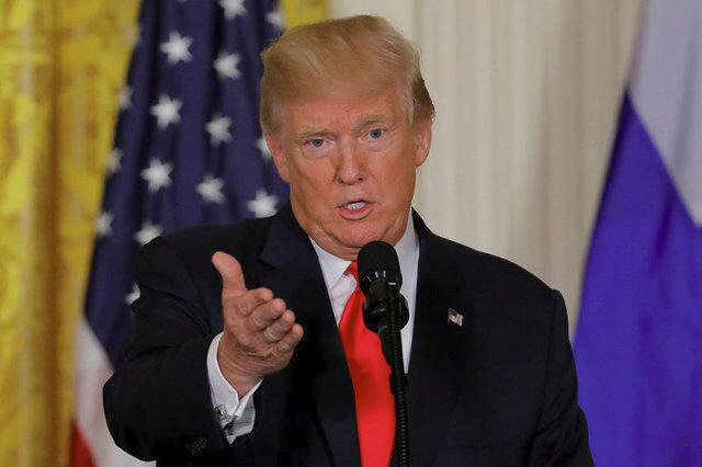 President Donald Trump holds a joint news conference with Finland's