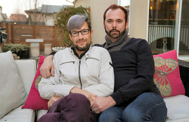 Gay married couple David Mullins (L) and Charlie Craig pose for