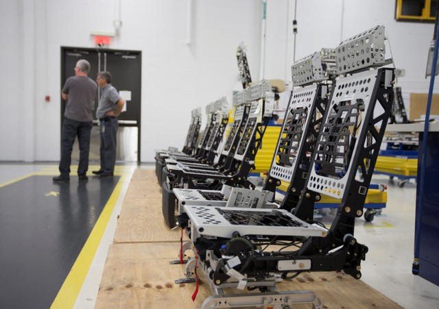 Bombardier Global aircraft chair frames are seen ready to be fitted at Bombardier Centre of Excellence for interior completion work in Pointe-Claire, Quebec, Canada, November 17, 2017. REUTERS/Christinne Muschi |