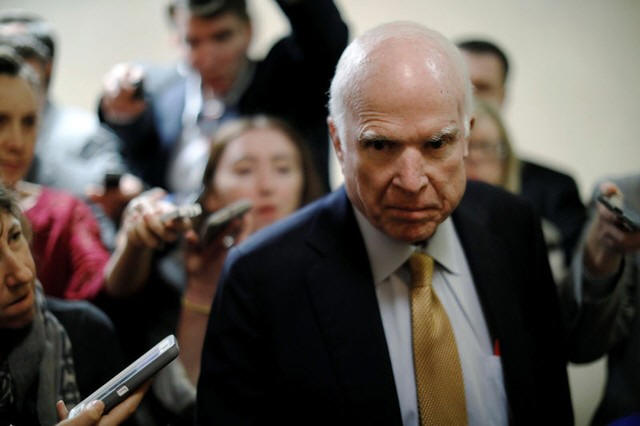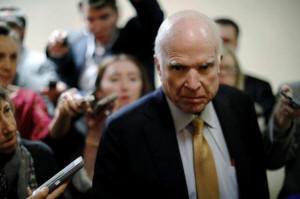 U.S. Senator John McCain (R-AZ) talks to reporters as he arrives for