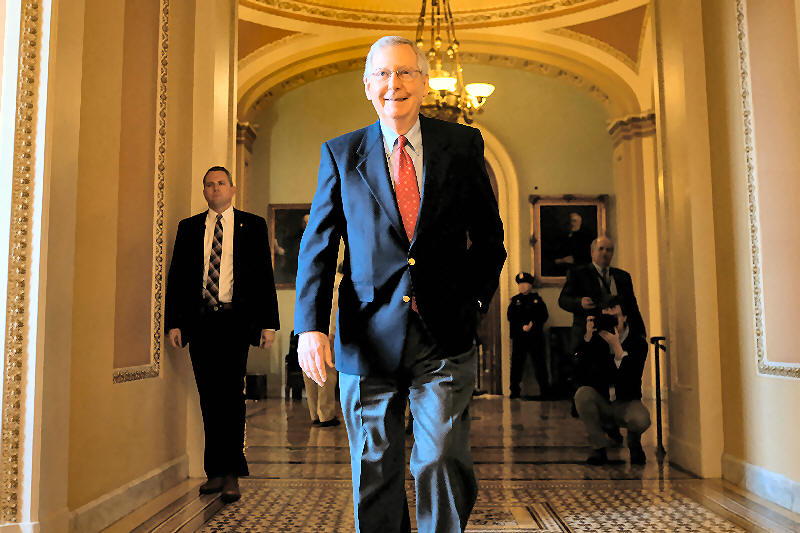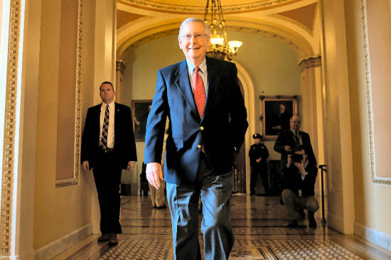 U.S. Senate Majority Leader Mitch McConnell (R-KY) walks to the