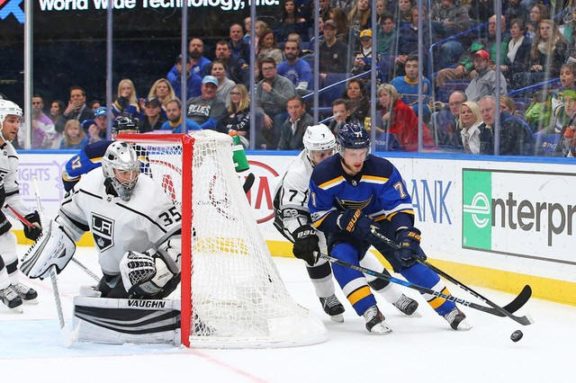 Blues left wing Vladimir Sobotka (71) handles the puck as Los