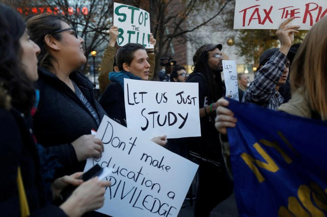 Graduate students rally against the proposed GOP tax reform bill at