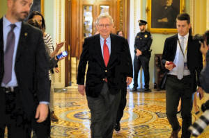 U.S. Senate Majority Leader Mitch McConnell (R-KY) leaves the Senate