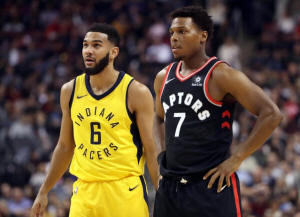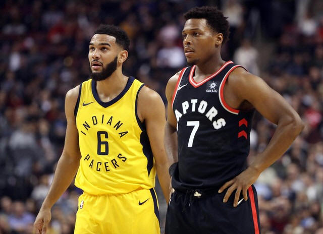 Pacers point guard Cory Joseph (6) and Toronto Raptors point guard